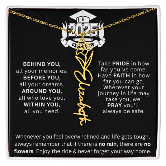 Graduation Gift | No Rain, No Flowers | Personalized Birth Flower Necklace